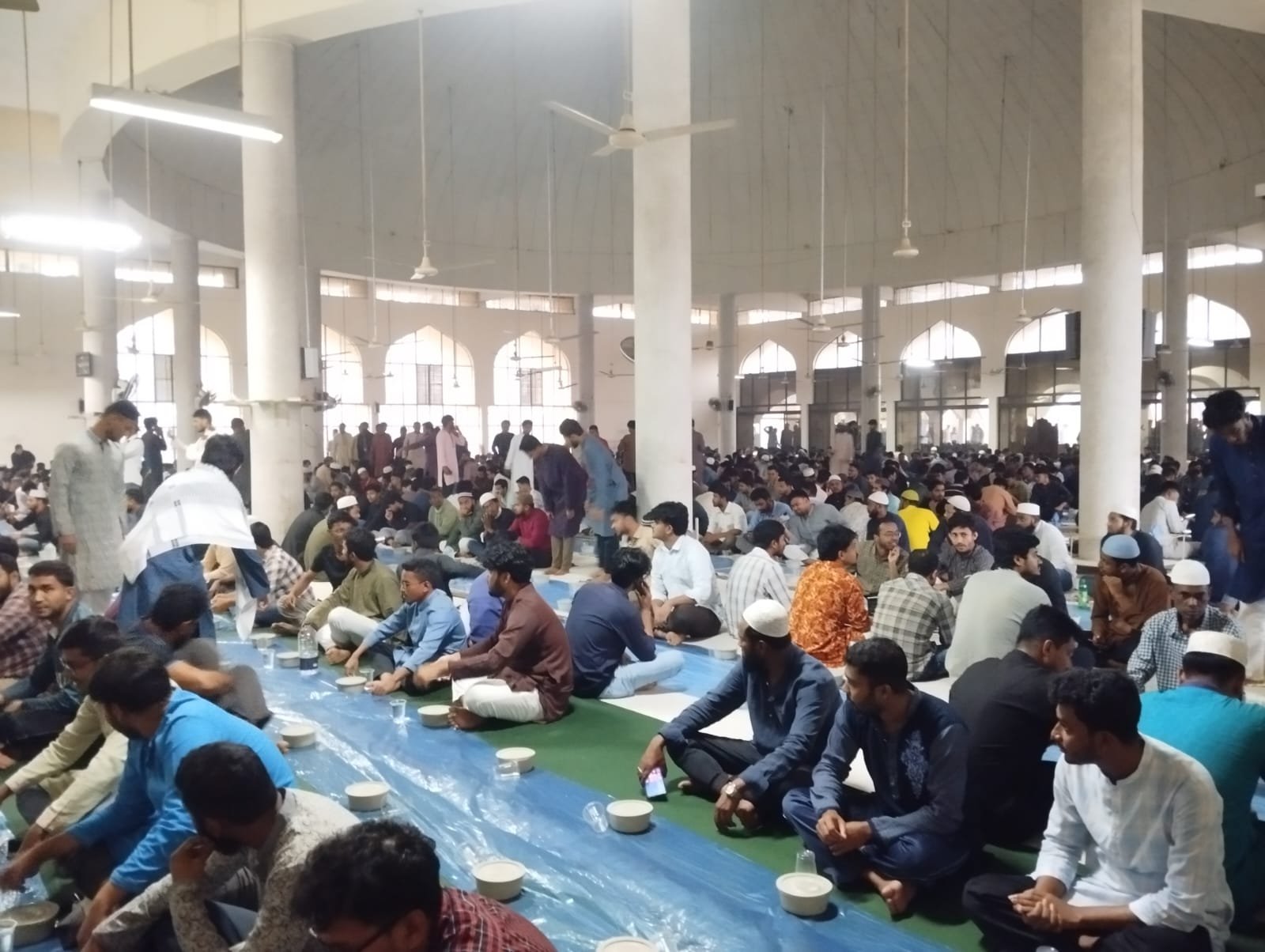 শুক্রবার (২০ ফেব্রুয়ারি) আসরের নামাজের পর থেকেই ইফতার উপলক্ষে বিভিন্ন হল থেকে শিক্ষার্থীরা দলে দলে বিশ্ববিদ্যালয়ের কেন্দ্রীয় মসজিদে উপস্থিত হতে থাকে। বিকেল থেকেই মসজিদ প্রাঙ্গণ হয়ে ওঠে লোকে লোকারণ্য।