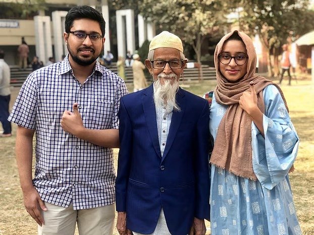 ঢাকা–৯ আসনের ভোটার মোতাহারুল চৌধুরী সকালেই খিলগাঁও মডেল কলেজ কেন্দ্রে ভোট প্রদান করেন। তার সঙ্গে প্রথমবারের মতো ভোট দিতে আসেন নাতি ওয়াহিদ চৌধুরী (২৮) ও নাতনি নানজীবা চৌধুরী (২২)। খিলগাঁও ঝিলপাড়ের বাসিন্দা এই দুই তরুণ ভোটার জীবনের প্রথম নির্বাচনে অংশ নিলেন দাদাকে পাশে নিয়েই। কেন্দ্র প্রাঙ্গণে তিন প্রজন্মের একসঙ্গে উপস্থিতি অনেকের দৃষ্টি কাড়ে।প্রথমবার ভোট দেওয়ার অভিজ্ঞতা জানিয়ে নানজীবা বলেন, ভোটের পরিবেশ ছিল নিরাপদ ও স্বস্তিদায়ক। কেন্দ্রে প্রবেশ থেকে ভোট প্রদান পর্যন্ত পুরো প্রক্রিয়াটি তার কাছে সুশৃঙ্খল মনে হয়েছে।