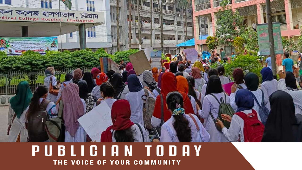 আজ ১৭ জুলাই ২০২৪ সকালবেলায় চট্টগ্রাম মেডিকেল কলেজের ৬২-৬৬ ব্যাচের নারী শিক্ষার্থীরা কোটা সংস্কার আন্দোলনের পক্ষে মিছিল বের করে। ঢাবি,